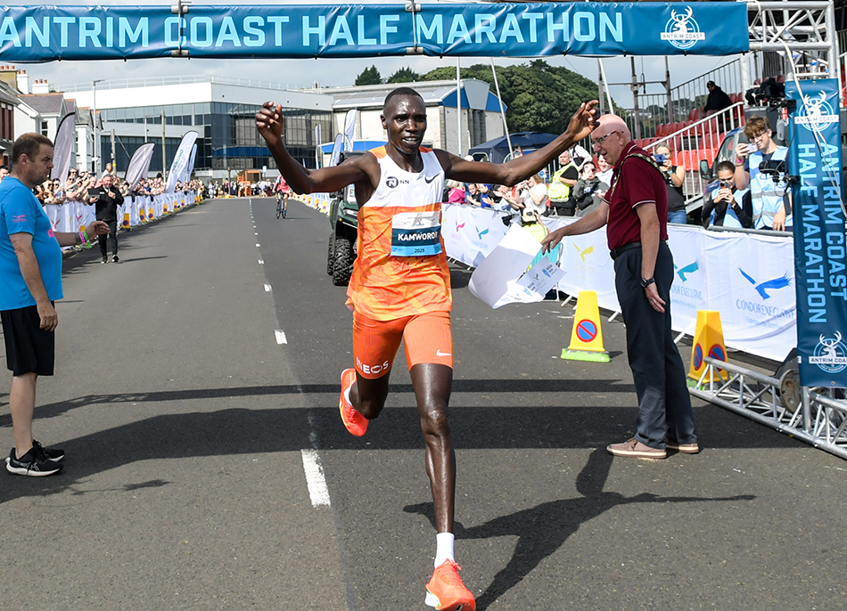 Geoffrey Kamworor of Kenya received the Condor Govt Antrim Coast Half Marathon on Sunday (Aug 24) in 59:51, whereas Mizan Alem of Ethiopia was first girl residence in a swift 65:38.
